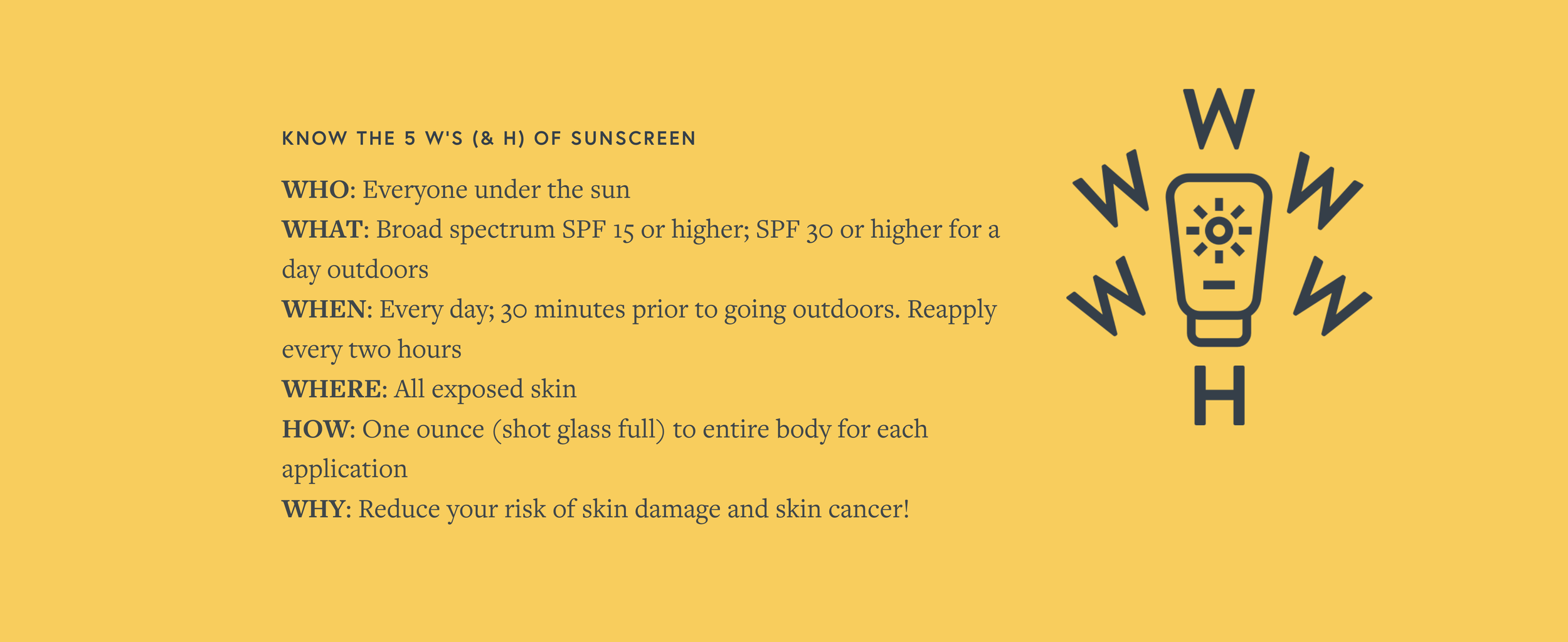 Hat and long sleeves are great! But they can’t cover everything, and you must apply sunscreen to all exposed areas. If you are going to be outside for more than 30 minutes, use SPF 30+ sunscreen, and reapply every two hours if you continue to be outdoors.